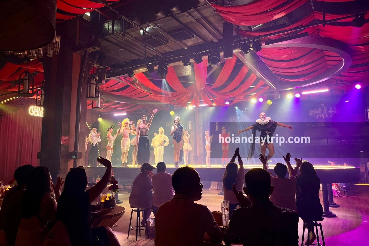 Visitors who purchased Ba Na Hills wow pass (skip-the-line ticket) can watch the cabaret show without fee too. Its price is from 300,000 VND per person. Food and beverages are separate from this price, but ordering them is easy in the show venue. See more information & details