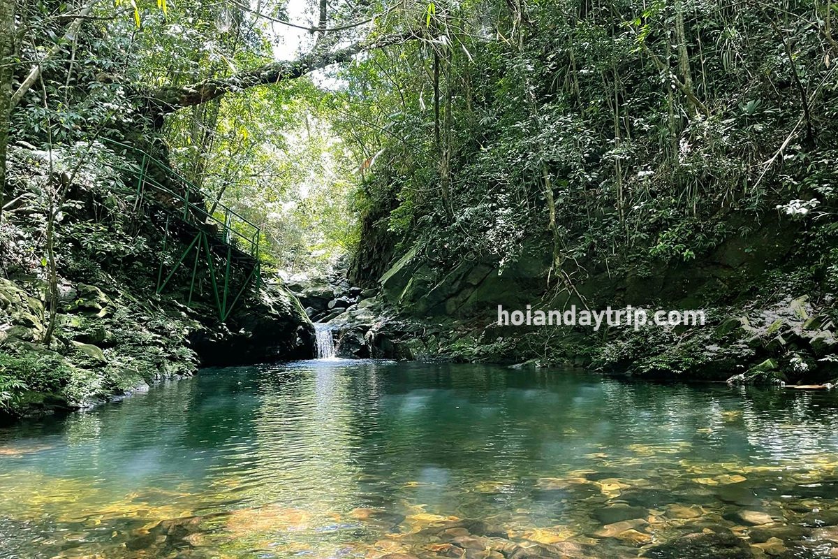 To complete the trail, it’s needed to walk through forests, across streams and hanging bridges or monkey bridges (bridges made by one or a few trees), climb over cliffs by ladder or rope, or climb stairs in lush bamboo forests. Plus pretty waterfalls, there is no doubt that the Five Lakes trail is the most awesome trekking trail in Bach Ma National Park.