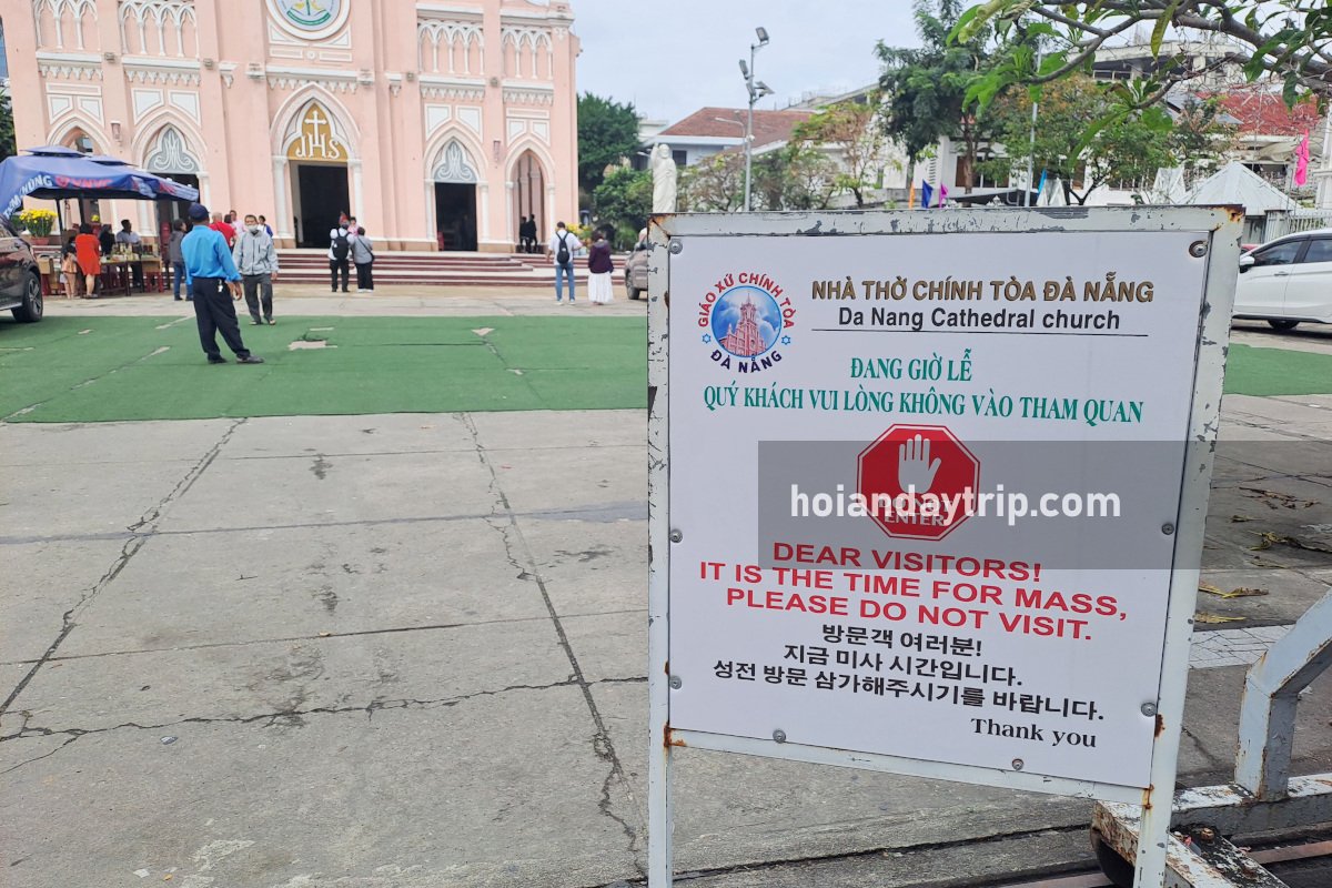 – Da Nang Cathedral isn’t open for visitors, except at mass times. Therefore, visitors are only able to walk around and take pictures with its façade.