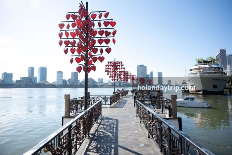 Visit a pedestrian bridge that honors the love on the East bank of the Han River. Here, couples often attack a padlock to its handrails, to express their permanent love. This is one of the most romantic places in Da Nang. The view to the city, the river and bridges is stunning, including a full view to the Dragon Bridge. See more details