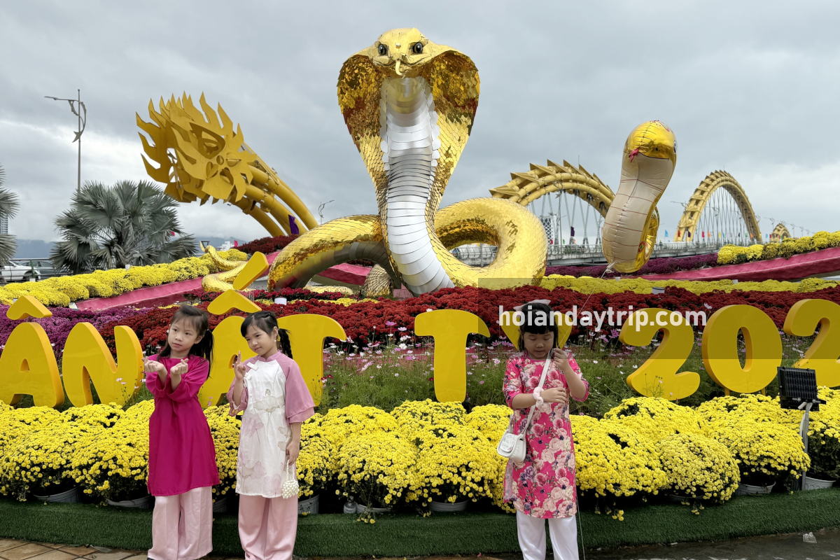 – Watch the Dragon bridge fire show: during Tet, the city often schedules extra performances for the Dragon Bridge. Usually, it’s at 9:00 PM on weekends, but during the Tet week, it may happen nightly. It will be extremely crowded, so arrive at least 45 minutes early to get a spot.