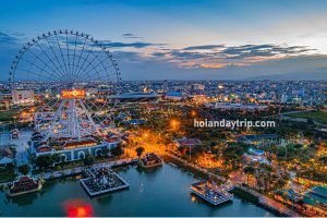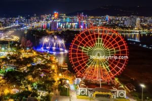 [Updated in January 2025] The Da Nang Downtown (or Sun World Asia Park) is an extensive amusement park in Da Nang Vietnam. Here, visitors will see a giant ferris wheel (one of 20 world’s tallest observation wheels), amazing shows and