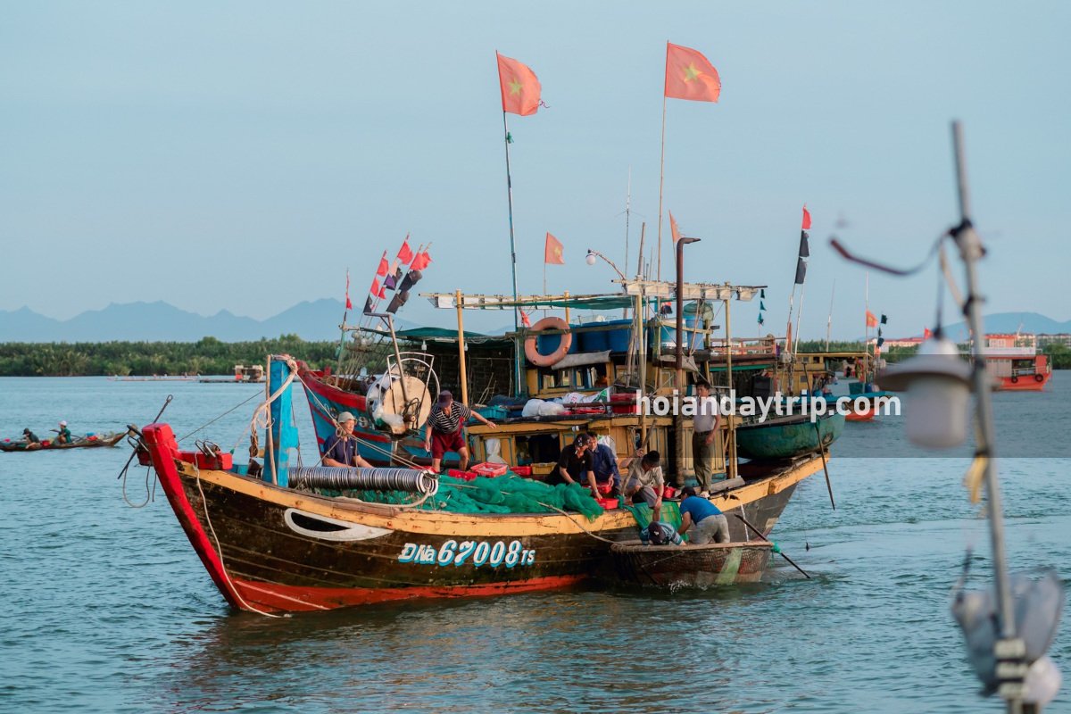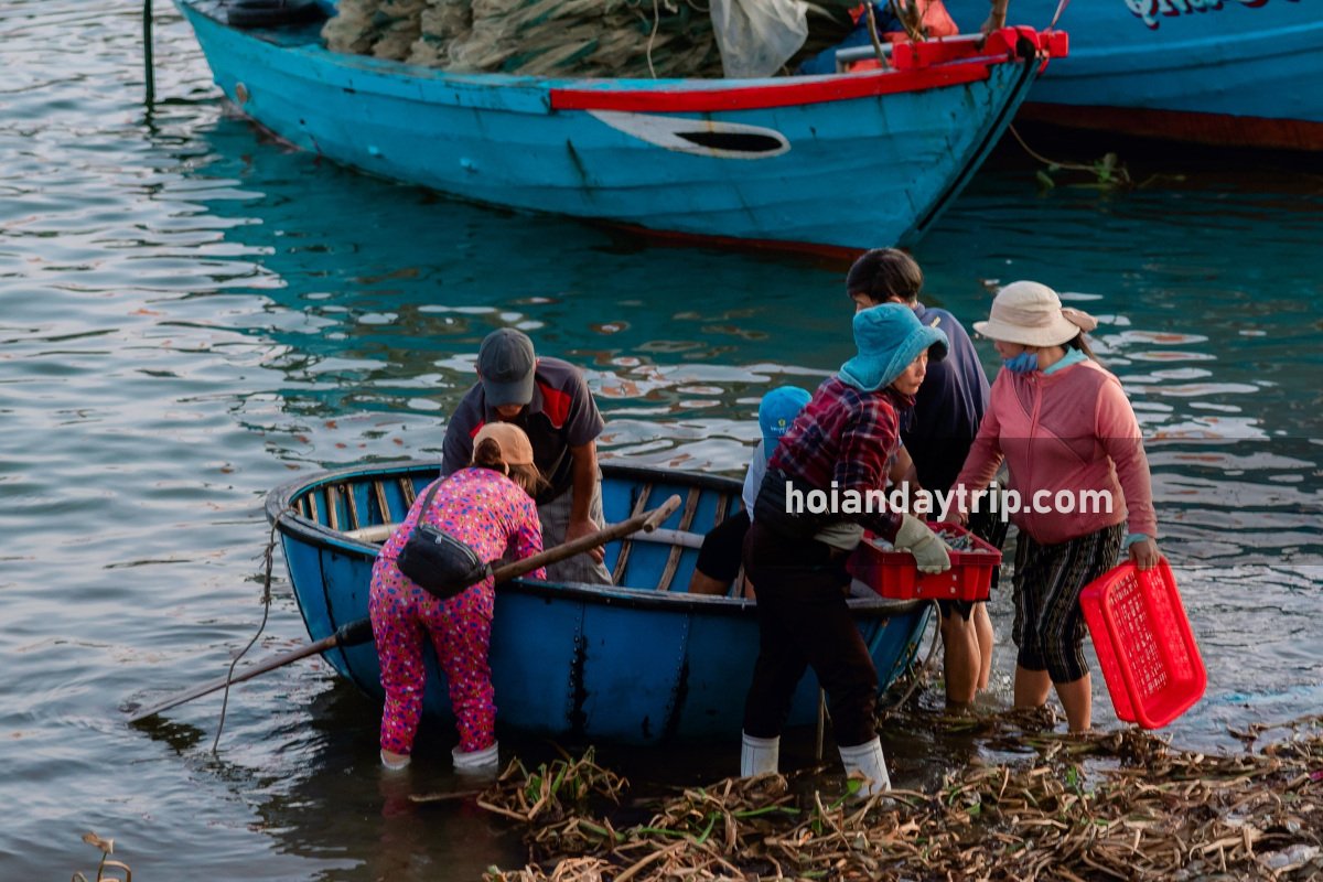Visitors can go to Duy Hai Fish Market by boat from Hoi An Old Town. It takes about 30 minutes. The scenery in the dawn is just stunning and liked by photographers.