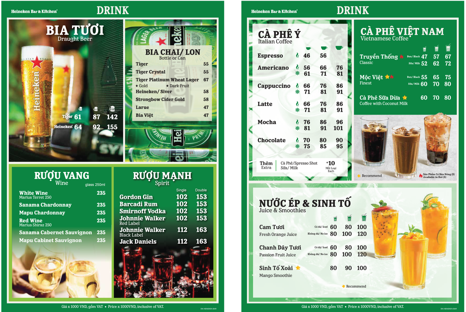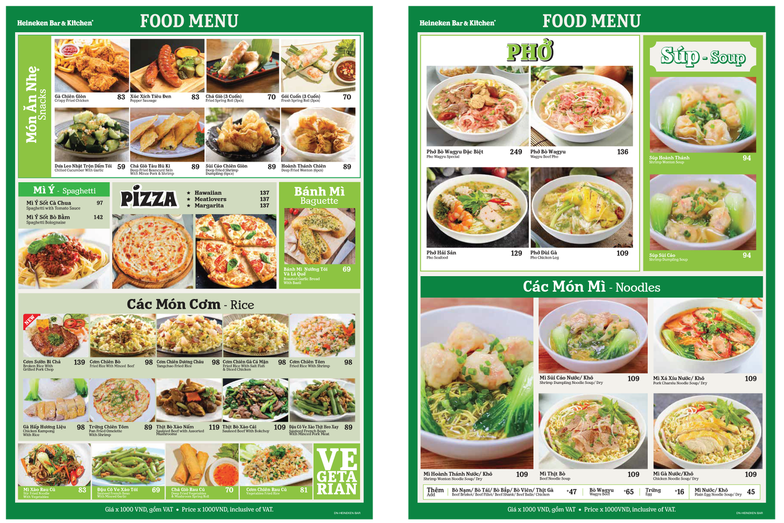 Menu & Prices of Heineken Bar & Restaurant (Da Nang Airport)