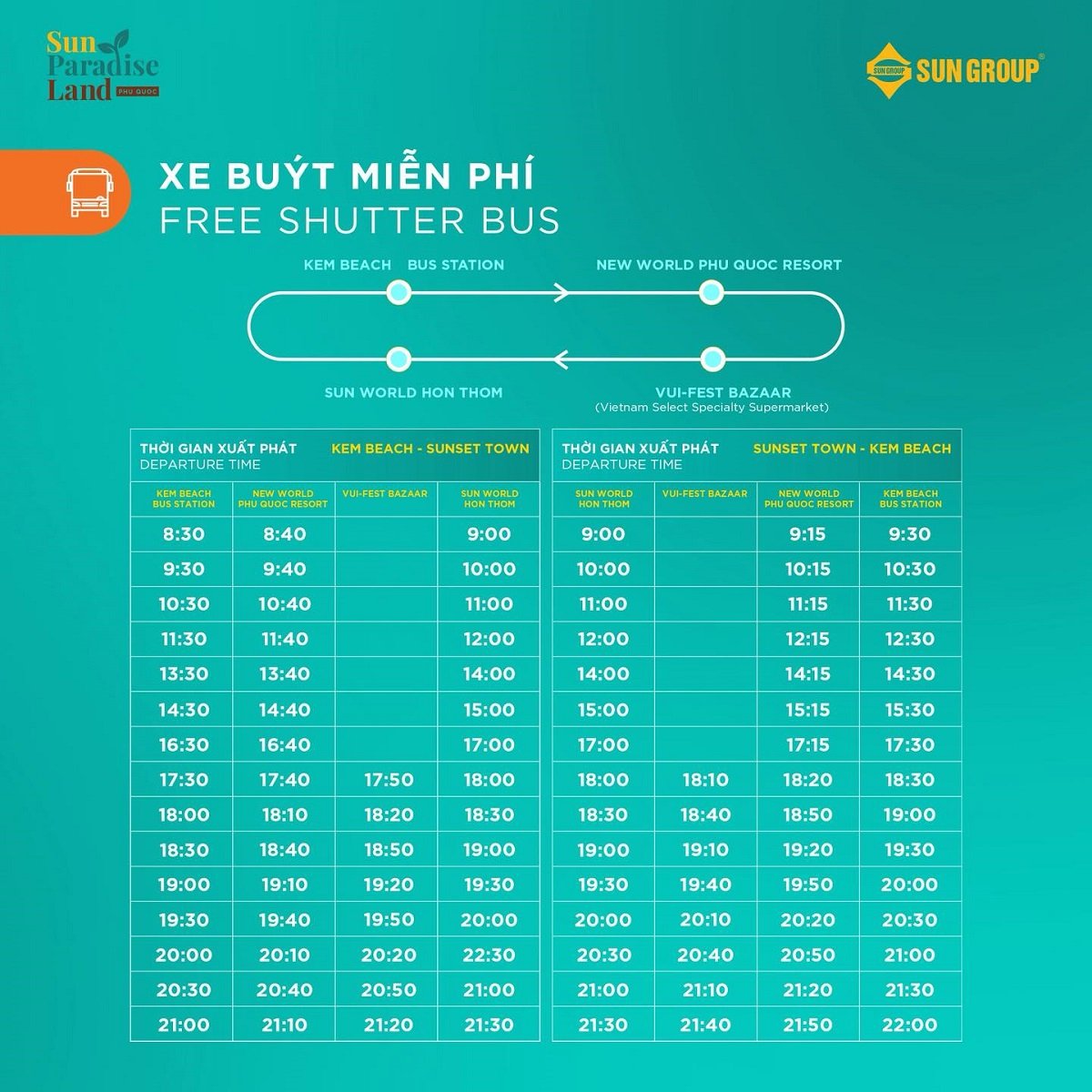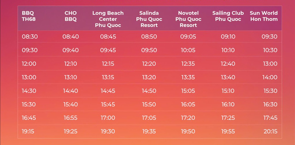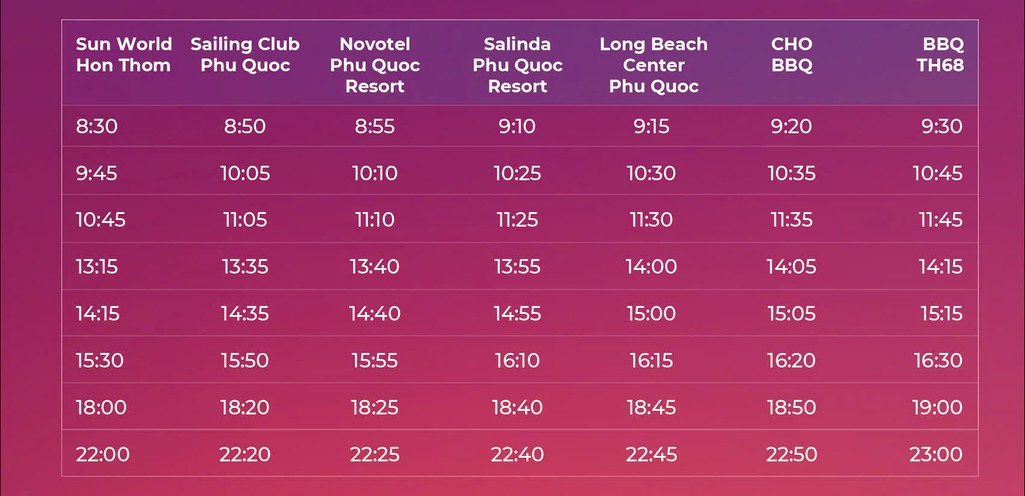 Hon Thom to Duong Dong Shuttle Bus Schedule