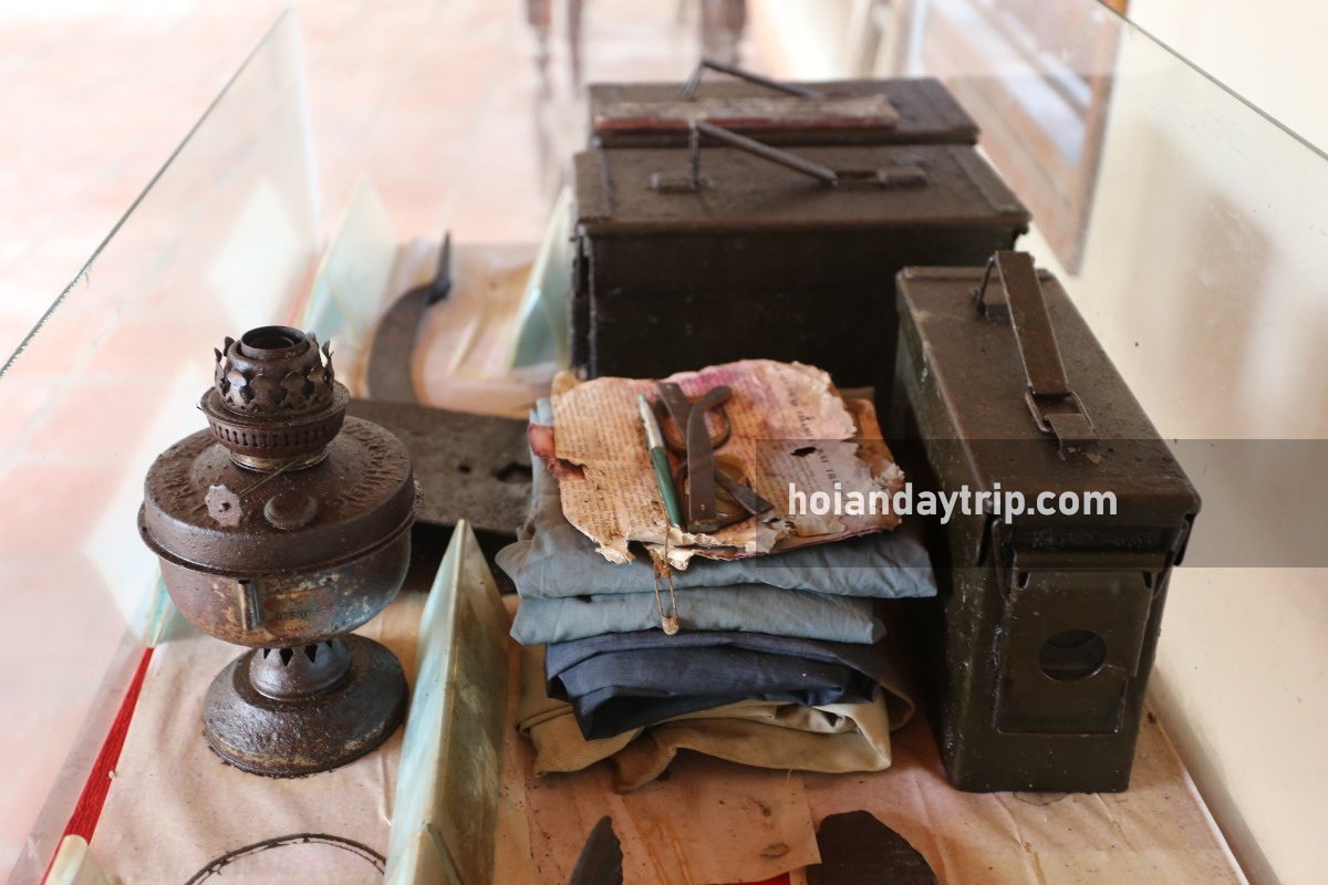 In the French colonial period, Thach Tan Communal House served as a place to store food, medicine and weapons. During the Vietnam War, this was the meeting place for Vietnamese communists. Below it, there is a hidden tunnel for first aid and food storage. Nearby, visitors will see a tunnel with a meeting room. It’s connected with other tunnels in the village. Spots where people see the hole to enter these tunnels, are only known by local people (may be a well, a stack of straw, a tree,…).