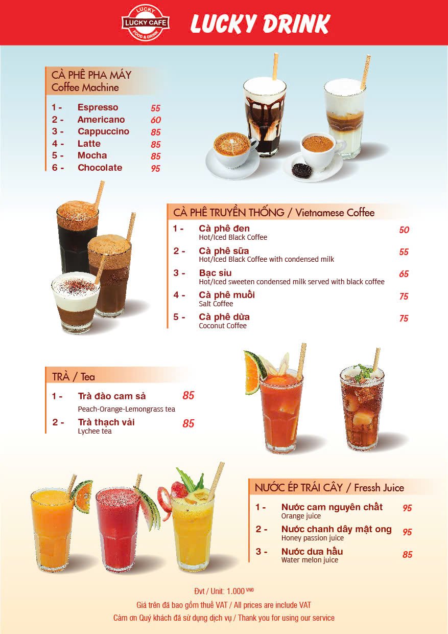 Menu & Prices of Lucky Cafe in Da Nang Airport