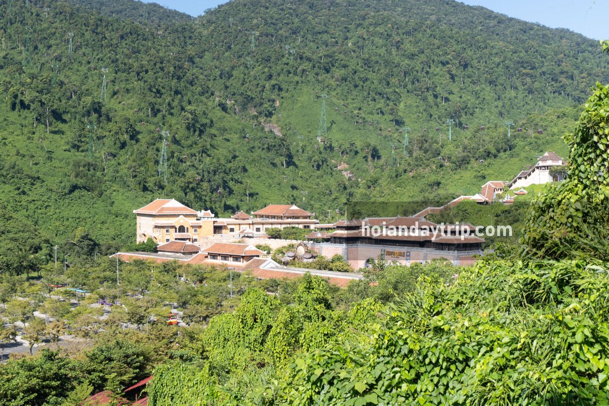 – From Hoi An Station: Marseille Station – Golden Bridge – Le Jardin d’Amour Flower Garden – Debay Wine Cellar – Big Buddha Statue – Linh Ung Pagoda – Bordeaux Station (near Golden Bridge) – Louvre Station – Eclipse Plaza, Atlas Statue, Lunar Castle – Dragon Den Station (inside Lunar Castle) – Mystery Well Station – French Village, Square du Dome, Fantasy Park (with Wax Museum, Jurassic Park, alpine coasters), Saint Denis Church, Helios Waterfall, Ba Na Hills Brewery – King Peak – L’Indochine Station or Taiga Station or the closest station that has been opened