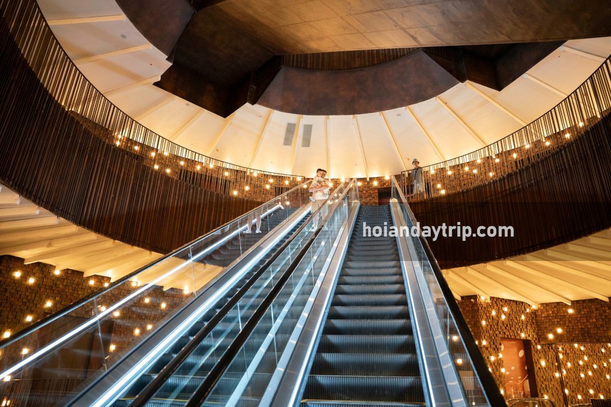 The cable car to the Moon Kingdom Station (from Hoi An 2 Station) takes visitors and passengers to the “Moon Kingdom”, a themed area which includes the station itself, Lunar Castle, Atlas Statue, Lava Castle, Four Seasons Restaurant, and Eclipse Plaza (see more information about Moon Kingdom). That’s why this station is decorated by many lights (symbolizing the stars in the universe).