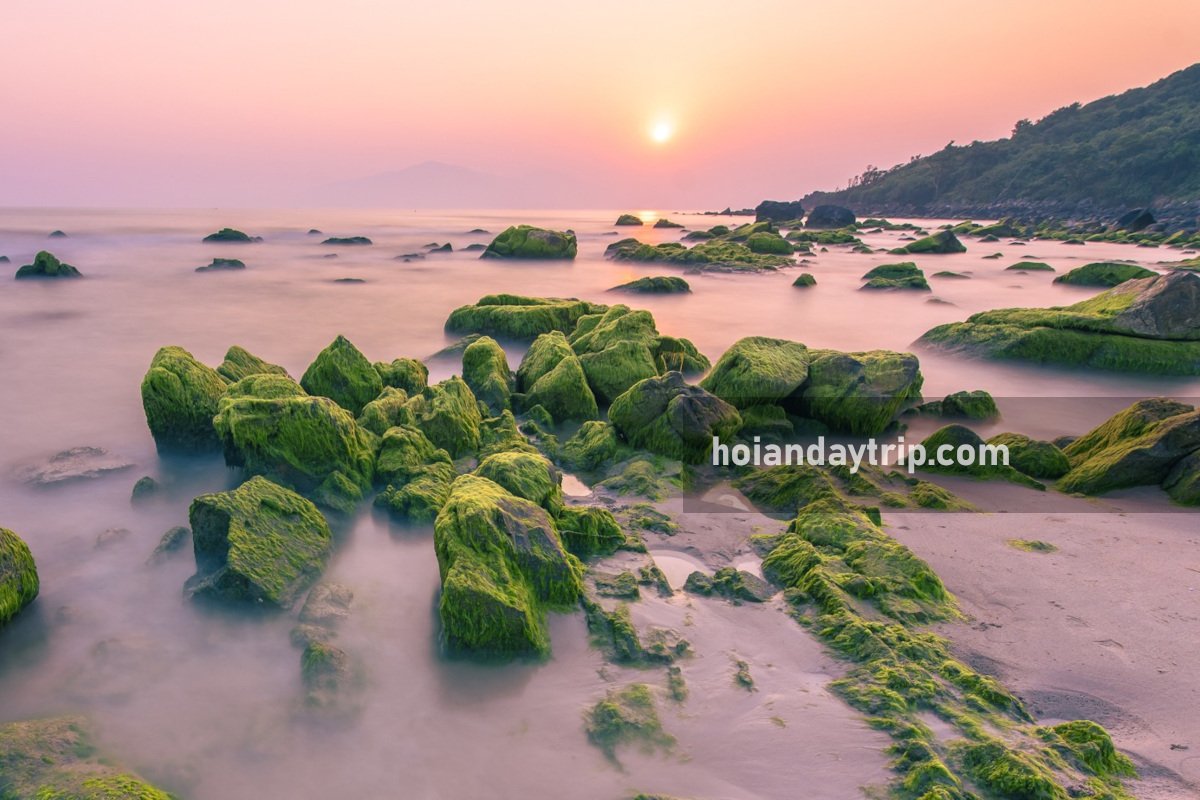 The most famous spot on Nam O Beach is the ‘Algae Beach’ where stones in different sizes and shapes, are covered by green algae in March and April each year. Lots of locals and photographers go to this place to take pictures. To get there, find the quickest way to this point on Google maps (Mieu ba Lieu Hanh, 16°07’03.7″N 108°07’50.1″E) and then follow a nearby small walking path. It’s free to enter, but parking requires a small amount of money.