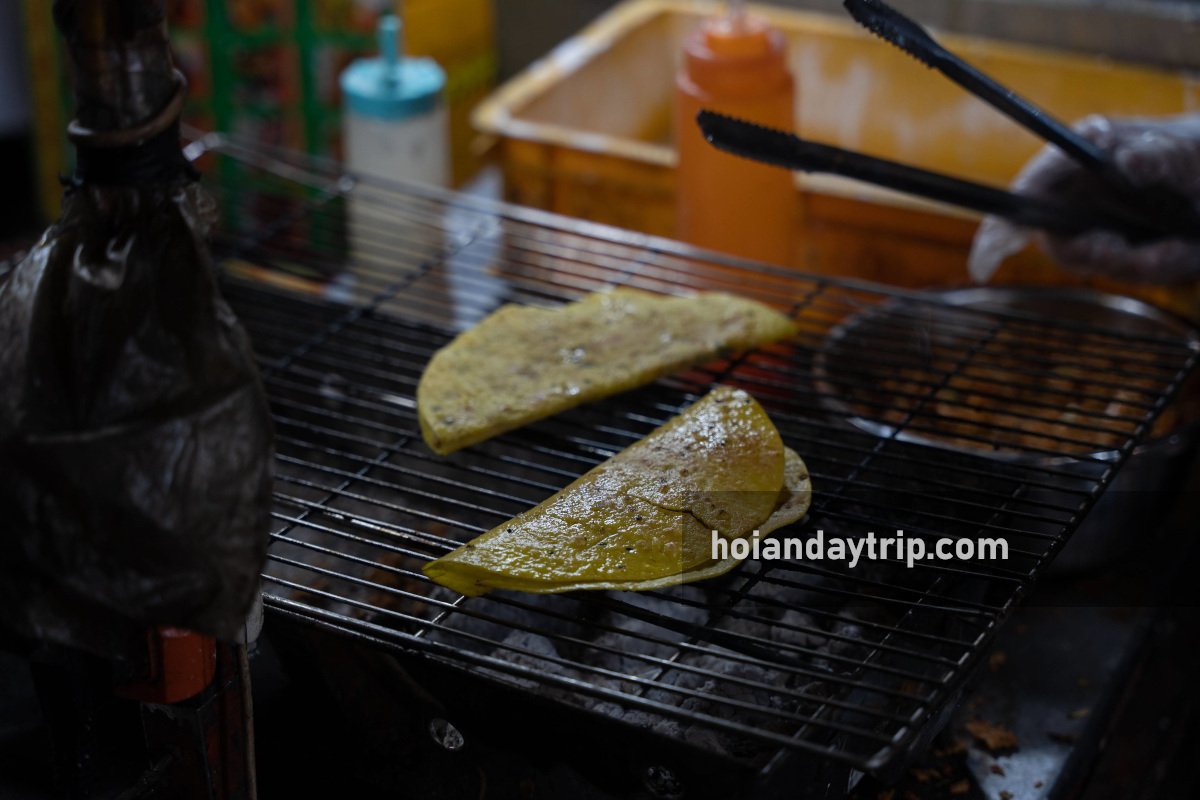 At the Cong Nu Ngoc Hoa Night Market, visitors can find street food stalls where different local dishes are sold at an inexpensive price. There are grilled pork skewers (served with rice papers, raw vegetables, sauce, pickles), grilled seafood, famous Hoi An’s noodles (Cao Lau noodles, Mi Quang noodles), Hoi An style chicken rice, lemongrass pork skewers (nem lui), banh mi sandwich, grilled rice paper (banh trang nuong), fried fish ball skewers, etc. Besides cold canned drinks, visitors can get fresh sugar juice or coconut water (all served with or without ice, upon request). Locally-sourced tropical fruits are also seen.