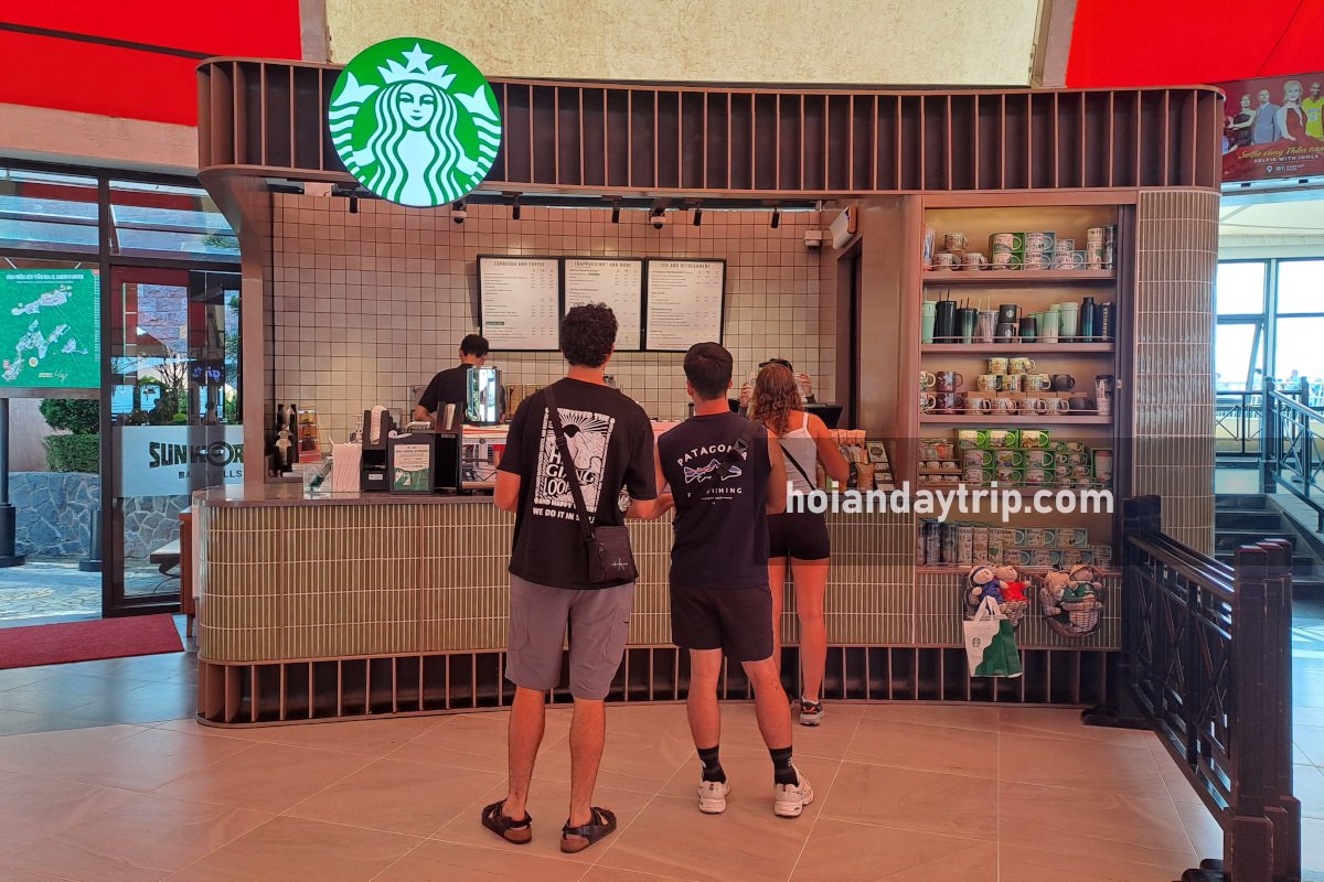 There is also a station of Starbucks at Ba Na Hills. It lies in the main entrance building of the park (before cable car). Compared to other Starbucks, this is the easiest store to find. On the way to cable car stations, visitors will go pass by it anyway.