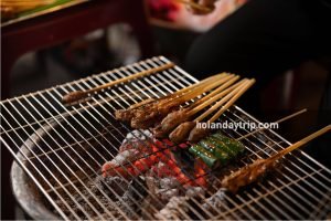 The banana and sticky rice are popular ingredients in Vietnamese cuisine. In Hoi An, people wrap the ripe banana fully by steaming sticky rice and then grill on the barbecue. Yes the recipe is simple, but the flavour is great.