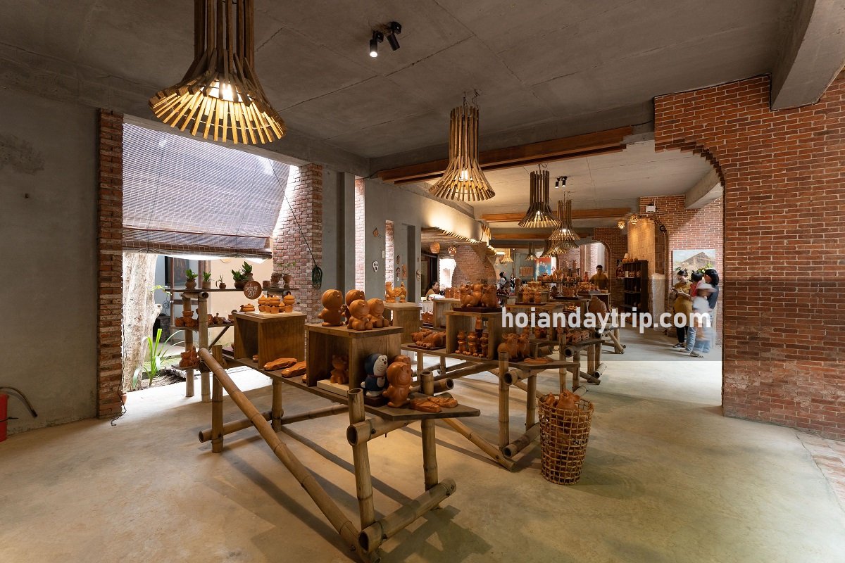 In the building to the left, the ‘closing kiln’ has a pottery market with a variety of clay souvenirs to see and shop, a coffee shop where visitors can have a break and enjoy a cup of Vietnamese coffee, and an exhibition about the heritage of pottery making at Thanh Ha Village where the terracotta park stands. History, manual tools, and all stages to make pottery are lively, allowing visitors to have a deeper understanding about the village and its craft. This tradition began in the 16th century, and on the 10th day of the 7th lunar month yearly, local artisans pay homage to ‘pottery ancestors’. In 2022, it’s recognized to be a national intangible cultural heritage.