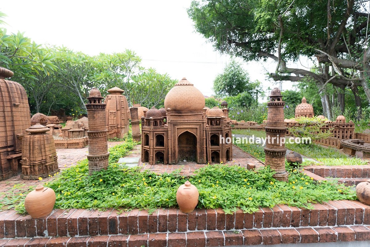Thanh Ha Terracotta Park consists of 8 zones, with two major buildings surrounded by an extensive garden, and interconnected. Before seeing them, don’t forget to have a look at the miniature of wonders of the world and famous places all over the world. There are Eiffel tower in France, Statue of liberty in USA, Big Ben tower in UK, Sydney opera house in Australia, Taj Mahal in India, the Great Wall of China, Colosseum amphitheatre in Italy, the Meridian Gate in Hue Vietnam, the One-Pillar pagoda in Hanoi Vietnam,…